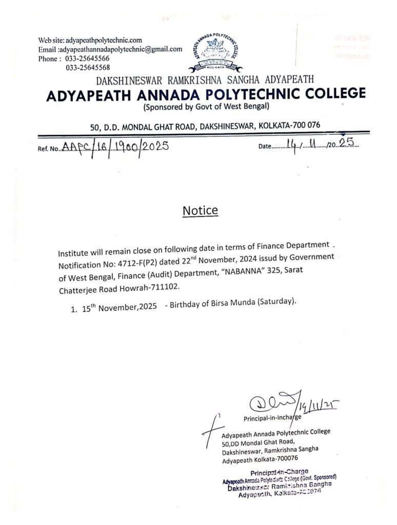 Institute will remain close on 15-11-2025